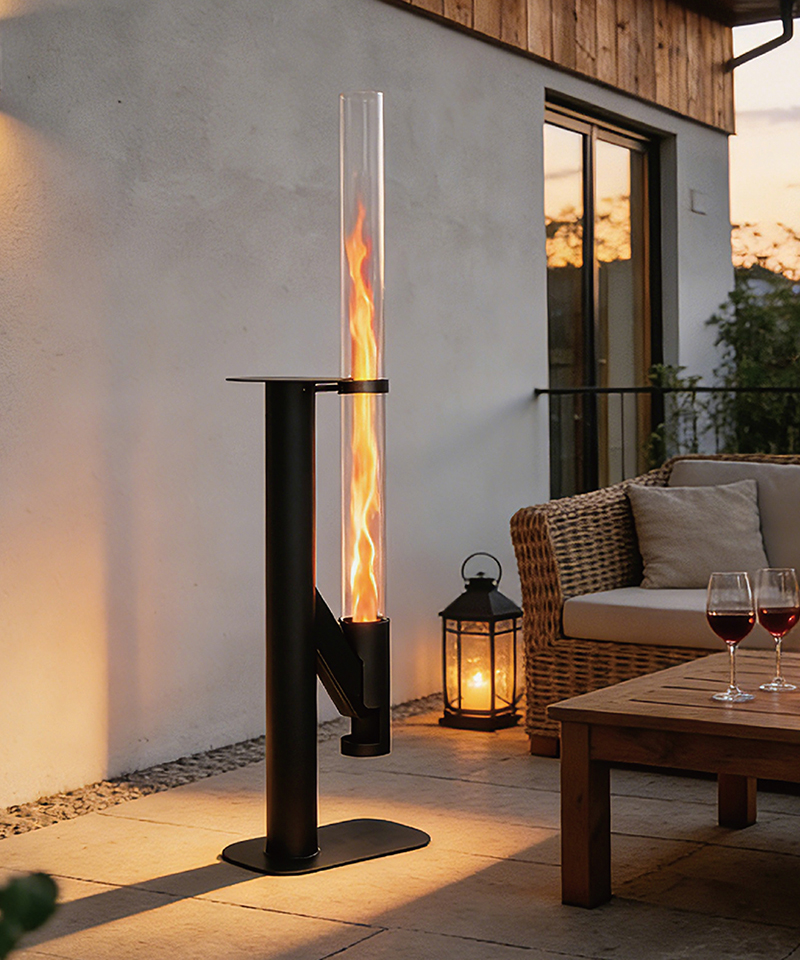 The wood pellet patio heater is a warm and attractive addition to the patio. The patio heater has a quartz glass tube with a diameter of 100mm is stylish and simple, and the flame is magnificent and shocking. The fire and the heat can be felt well around the heater, which means that the patio heater has a high efficiency.