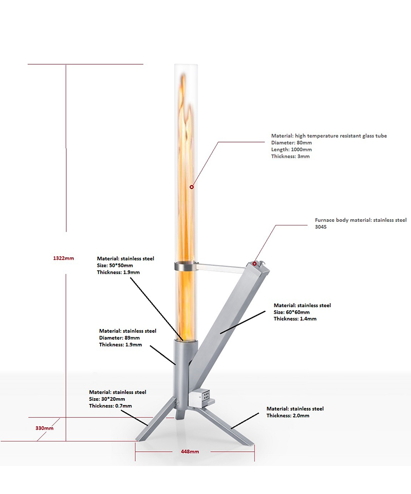 Glass smoke tube size | 80(Ø)*1000(H)*3(THK)mm |